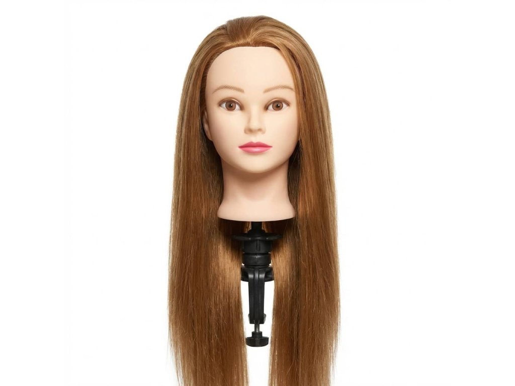 Cvičná hlava s umělými vlasy je vhodná pro trénink zaplétání copánků a dalších účesů.
