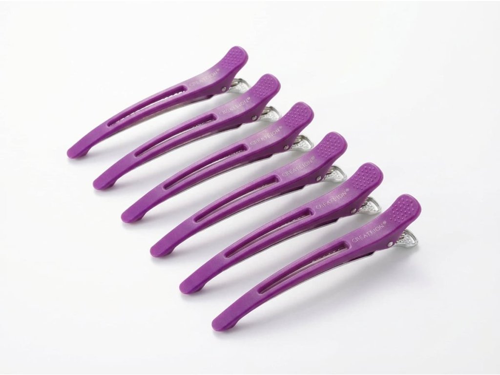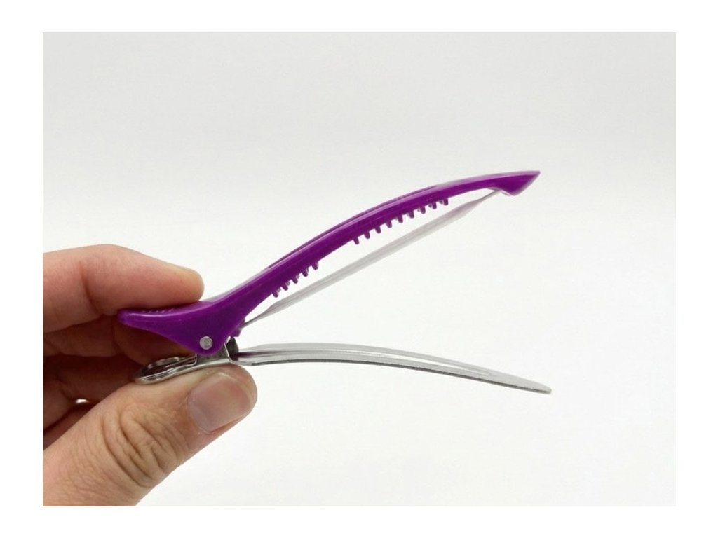 Profesionální kadeřnický skřipec / klips, který drží tam, kde má. Praktický kadeřnický skřipec s gumičkou na spodní části, díky níž lépe drží na vlasech a neklouže. Vhodný pro oddělování vlasových sekcí při pletení copánků, barvení, stříhání nebo stylingu.