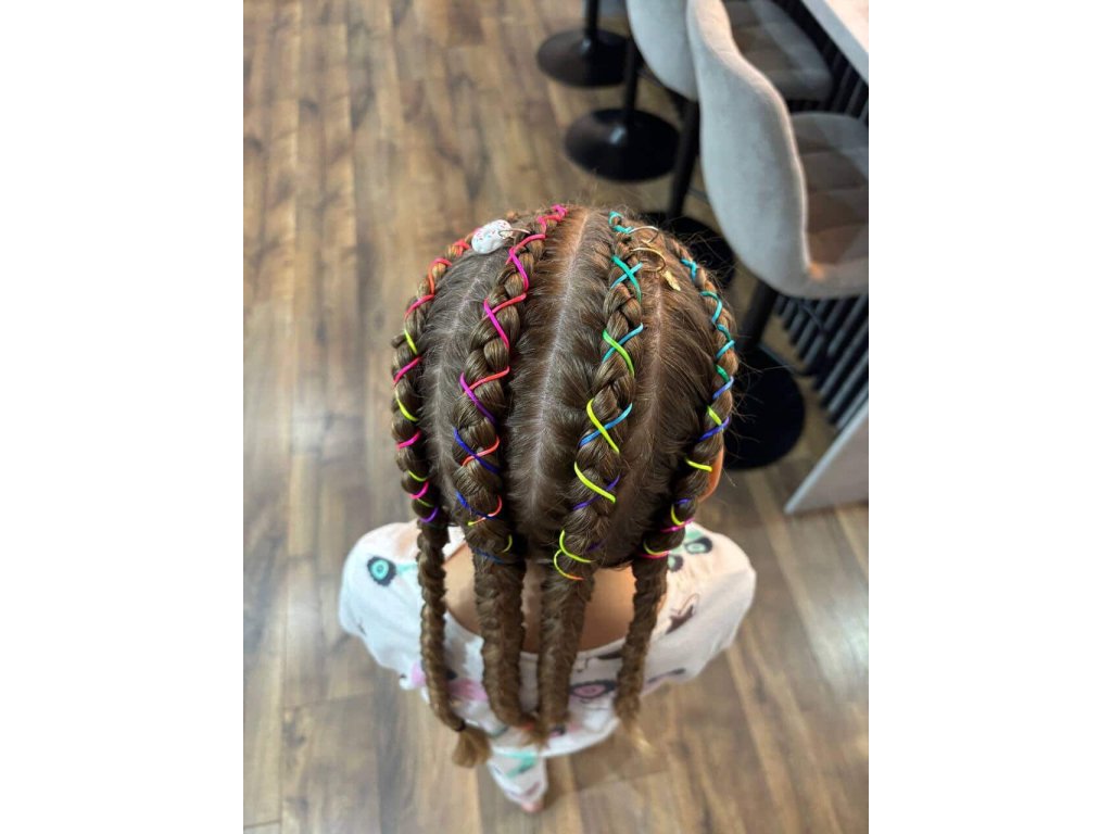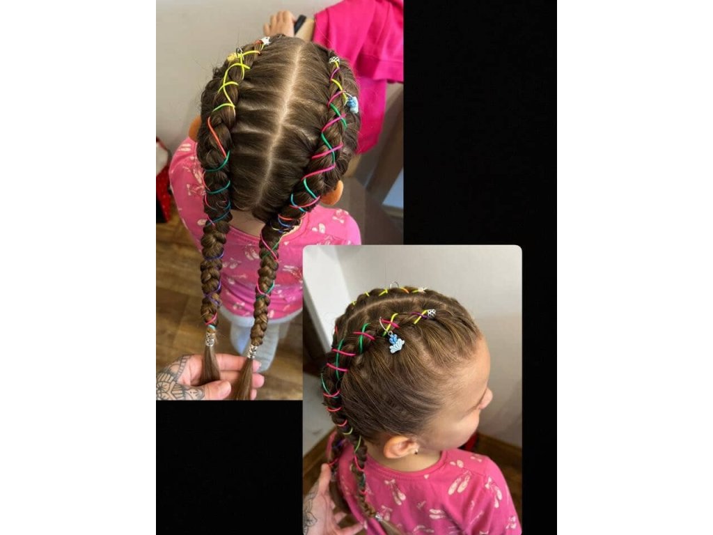 • Barevná šňůrka – pro ozdobení a zpevnění copánků